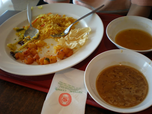 Oops, picture taken after I ate it. Vegetarian briyani rice (3 vegetables) with green bean dessert & dhall.